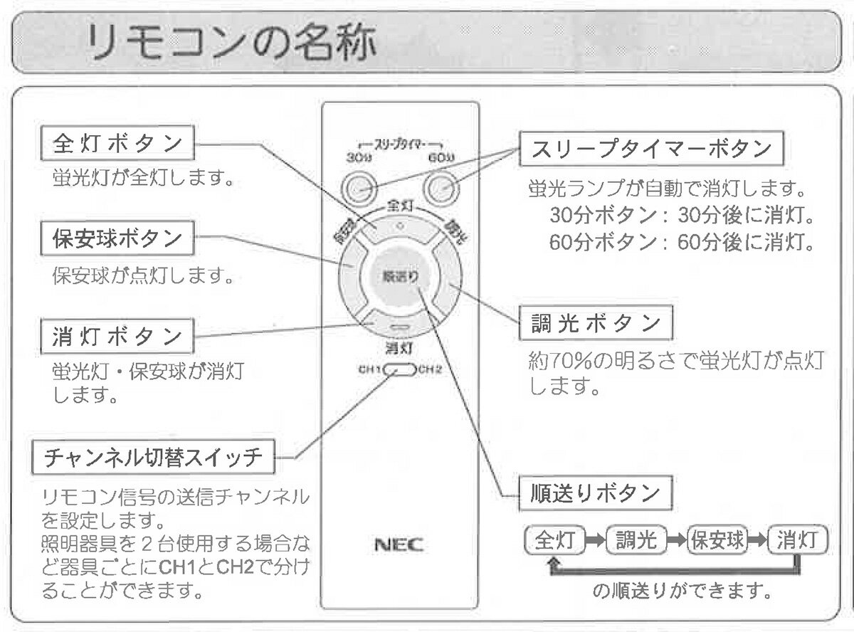 メーカー: NEC / NECライティング シリーズ名:シーリングライト用リモコン 電池(単三形乾電池 2本)は別売です。