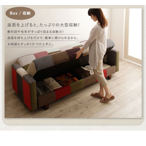 Box /収納座面を上げると、たっぷりの大型収納!敷布団や毛布がすっぽり収まる収納力!座面を持ち上げるだけで、簡単に開けられるから、お部屋もすっきり片づけ上手に。