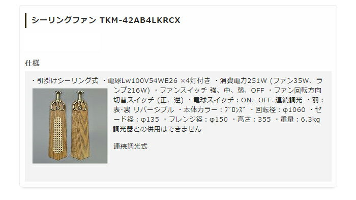 リモコン式引っ掛けシーリング式カラー:茶、ブロンズ材質:鉄、ガラス、リモコンファンスイッチ:強、中、弱 OFFファン回転方向切換スイッチ(正、逆)羽:リバーシブル 片方網目付き リモコン照明スイッチ 連続調光 OFFファン消費電力24W 回転径 φ1060 セード径φ135フレンジ径φ150 全体高さ355 重量:6.3kg調光器との併用はできません傾斜天井使用不可白熱電球 60W 付き【代引きについて】こちらの商品は、代引きでの出荷は受け付けておりません。