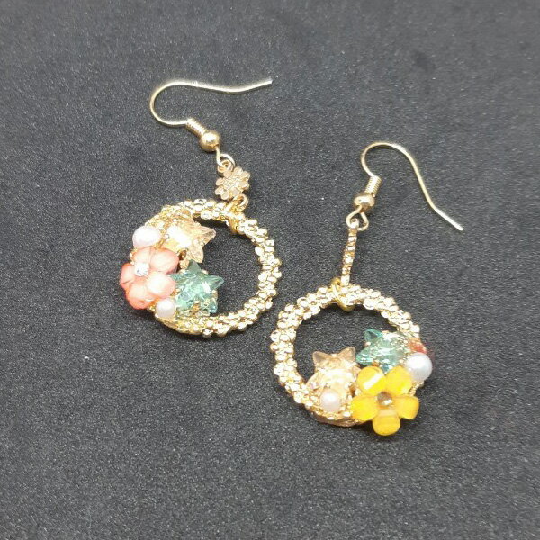 ●商品名 星と花のピアス ●サイズ 縦5.5cm、横2cm 商品画像につきまして、撮影状況やご使用のモニター環境により、実際の商品の色合いと多少異なって見える場合があります。